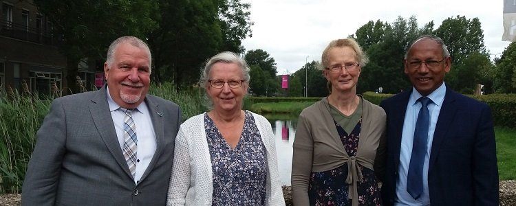Op onderstaande foto’s ziet u het bestuur zoals het vanaf 1 juli 2020 is samengesteld. V.l.n.r. de echtparen Massar, Jesuthasan, Luimes en Ros.